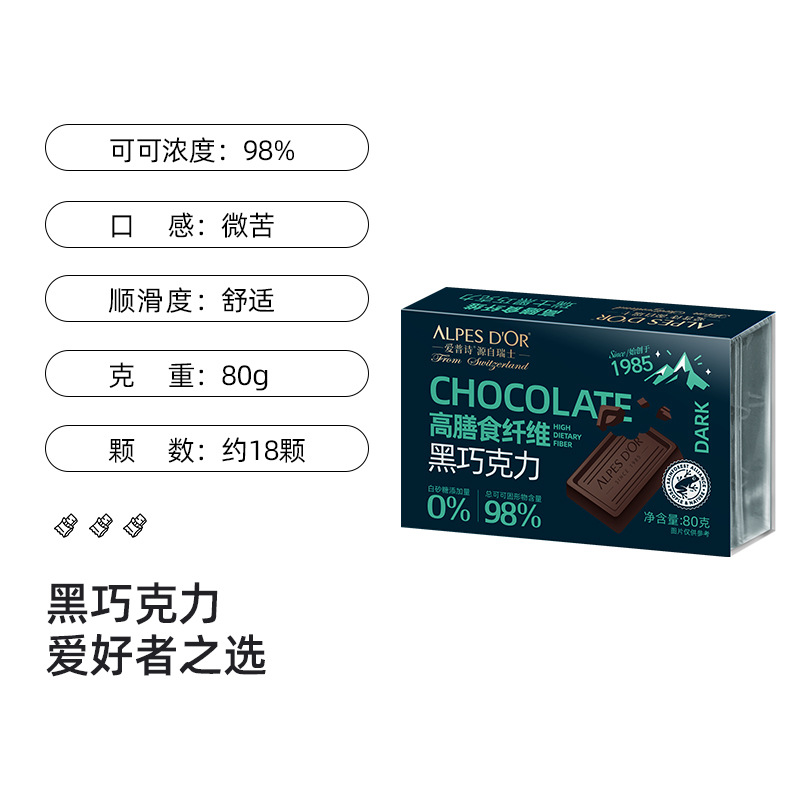 黑巧克力爱普诗瑞士进口可可脂0白砂糖98%黑巧网红爆款零食80g월 판매량 0개재구매율 0%16,530원 * 수입시 예상 단가58.00元55.10元