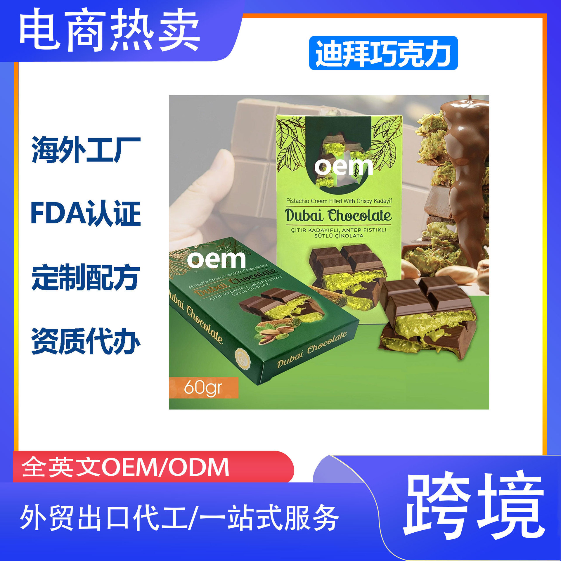Dubai迪拜风格巧克力开心果酱代发醇香酥脆热销爆款夹心巧克力월 판매량 6개재구매율 0%14,970원 * 수입시 예상 단가49.90元