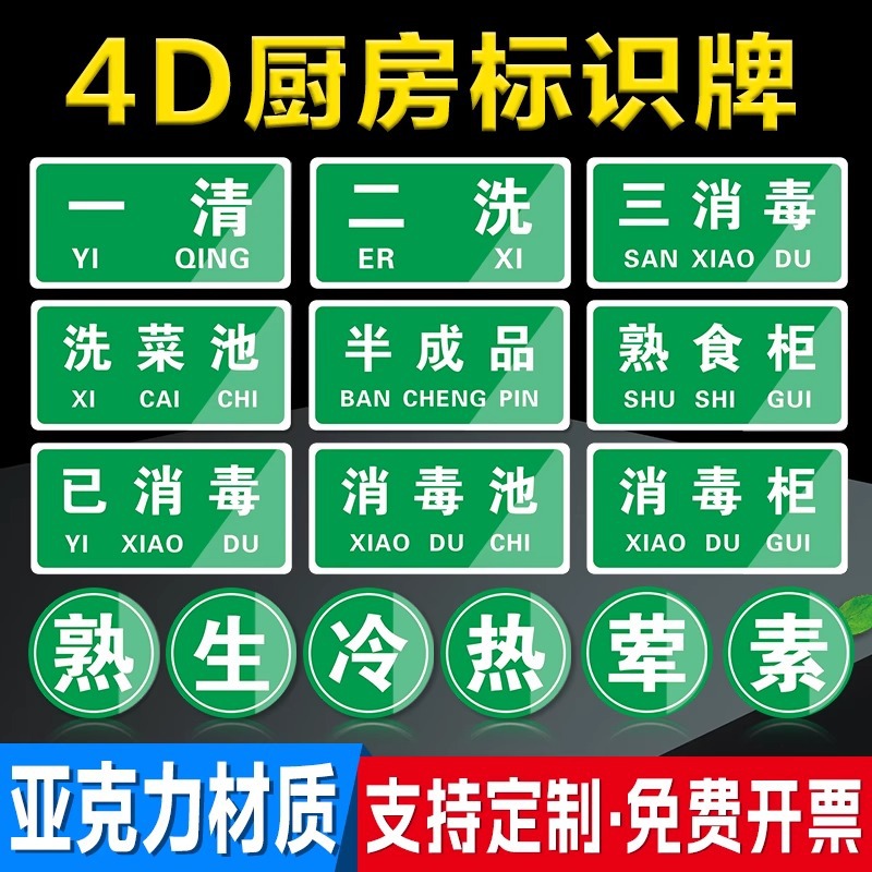 4d厨房管理标识牌一清二洗三消毒酒店食堂饭店餐厅幼儿园亚克力牌월 판매량 139개재구매율 50%600원 * 수입시 예상 단가2.00元