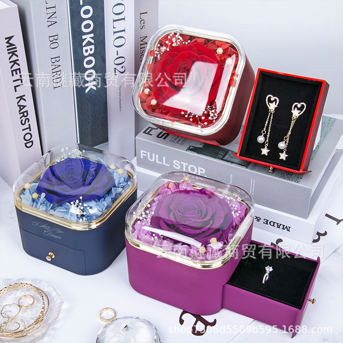 跨境亚马逊热卖永生花真玫瑰花圆角亚克力首饰盒装节日礼物월 판매량 7개재구매율 0%12,600원 * 수입시 예상 단가42.00元