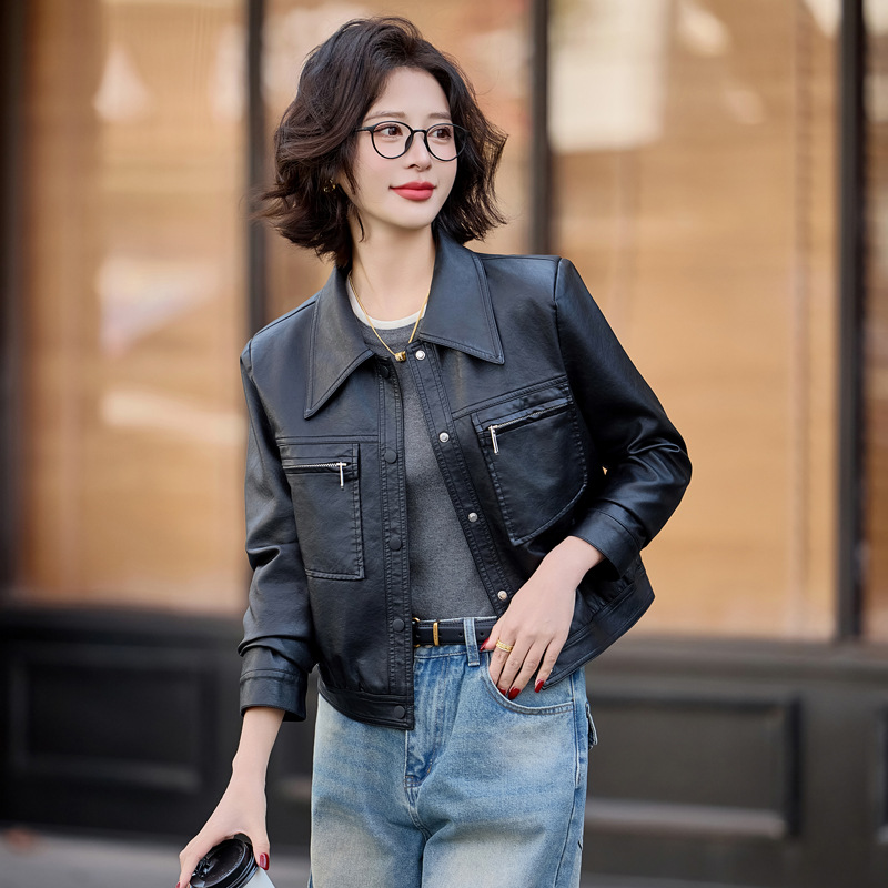 2025春秋新款皮衣外套女短款机车服爆款休闲小个子pu皮西装领夹克월 판매량 0개재구매율 0%29,760원 * 수입시 예상 단가99.20元