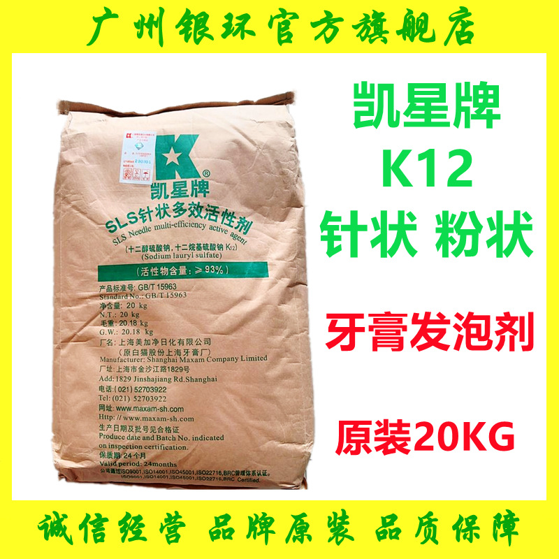 热销!凯星K12针状 十二烷基硫酸钠 化妆品级发泡剂 乳化去污20kg월 판매량 20개재구매율 0%5,550원 * 수입시 예상 단가18.50元