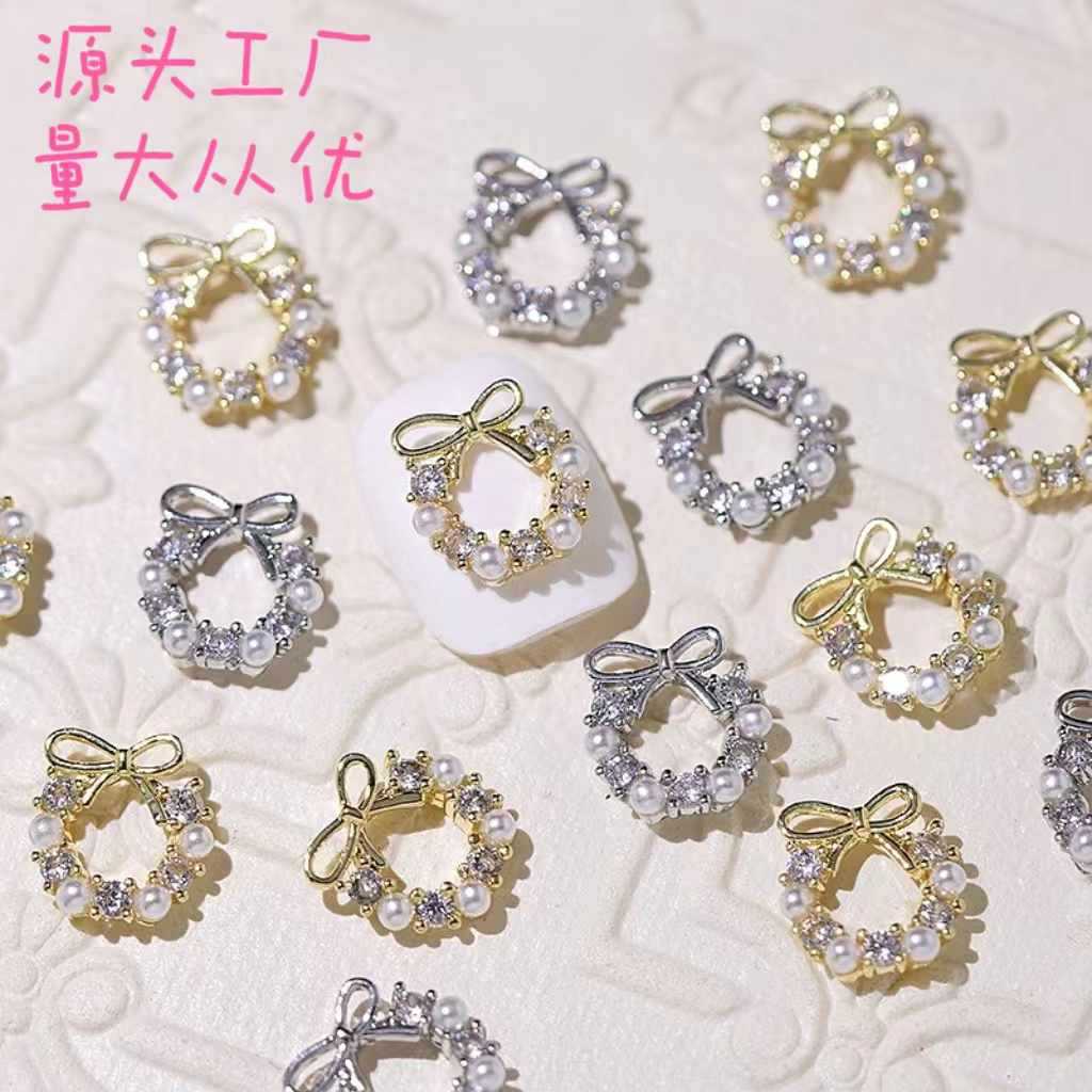跨境爆款美甲饰品网红高级感圣诞花环蝴蝶结锆石合金超闪指甲金属월 판매량 56995개재구매율 25%42원 * 수입시 예상 단가0.14元