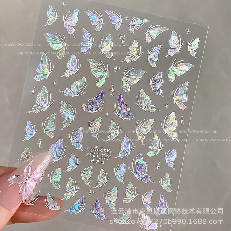 网红高级美甲幻彩贝壳蝴蝶极光贴纸仙女新款清透指甲纯欲爆款背胶월 판매량 230개재구매율 50%240원 * 수입시 예상 단가0.80元