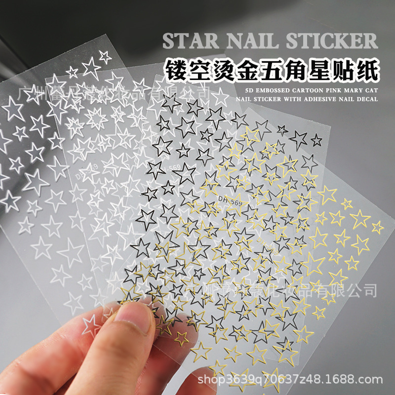 爆款美甲贴纸3D立体不规则五角星星多巴胺镂空黑白烫金银指甲贴花월 판매량 1166개재구매율 3%195원 * 수입시 예상 단가0.65元