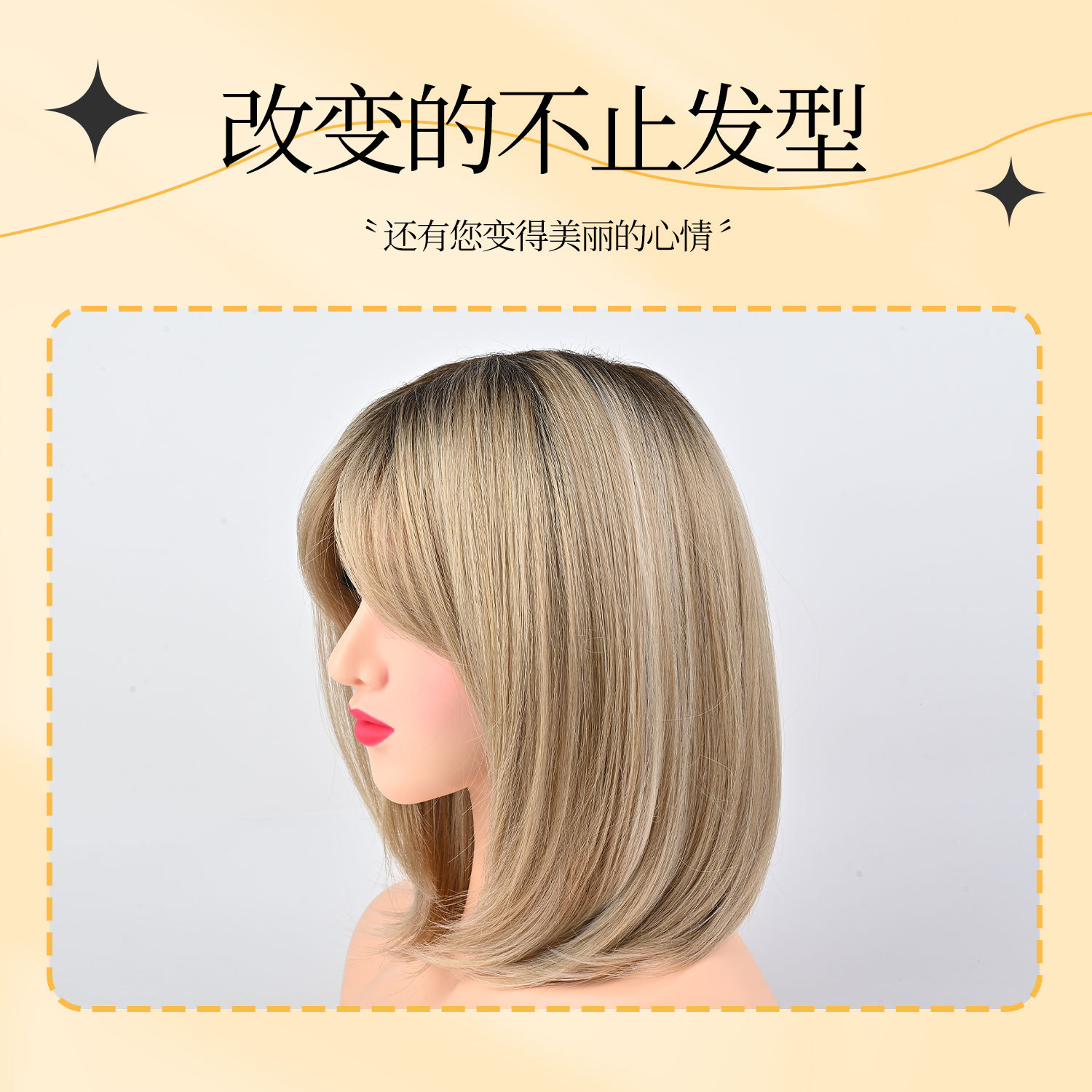 亚马逊爆款假发混染浅金色bobo头套高温丝化纤女式齐肩短直发直供월 판매량 2개재구매율 0%12,000원 * 수입시 예상 단가40.00元