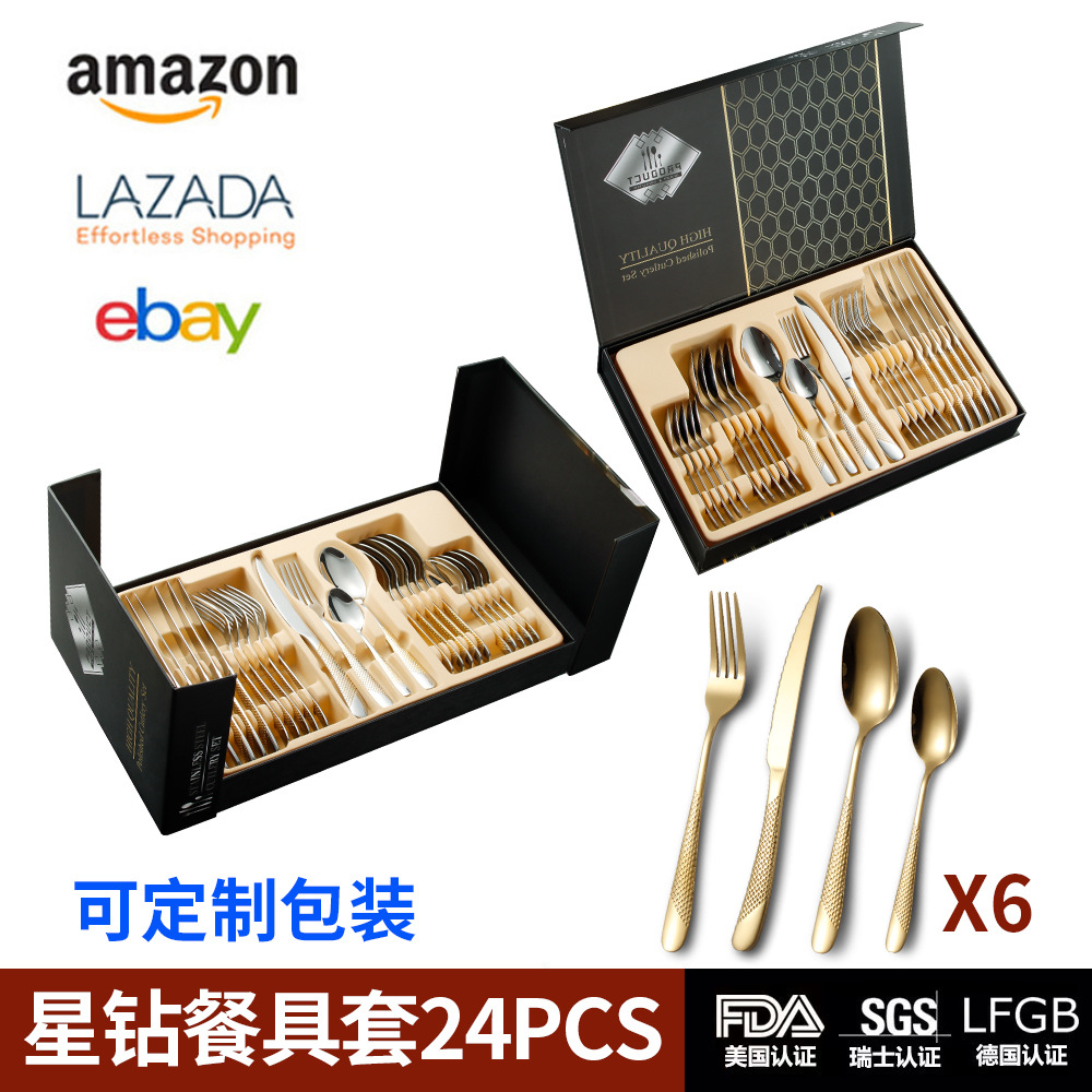 跨境不锈钢餐具星钻礼盒24件套亚马逊爆款西餐牛跑刀叉勺礼盒套装월 판매량 0개재구매율 0%12,900원 * 수입시 예상 단가43.00元