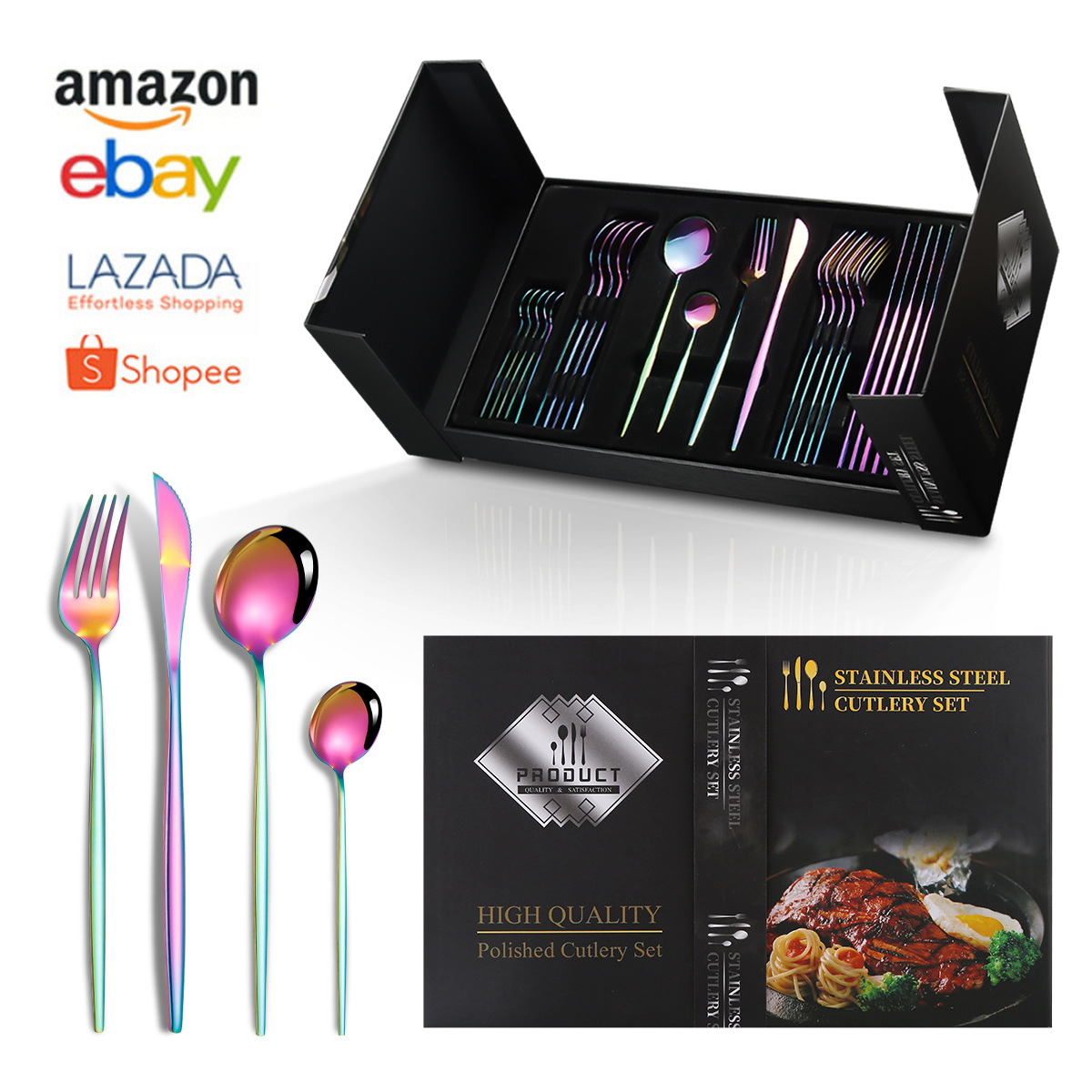 亚马逊爆款304不锈钢餐具套装四主件刀叉勺个性创意悬挂壁西挂杯월 판매량 0개재구매율 0%780원 * 수입시 예상 단가2.60元