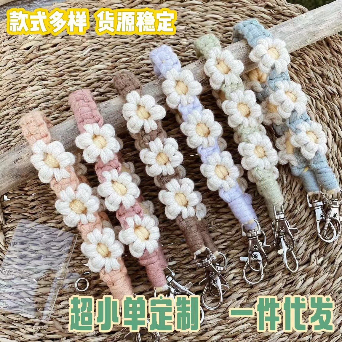 跨境爆款波西米亚手工编织钥匙扣手腕带北欧风小雏菊花朵手机挂绳월 판매량 885개재구매율 6%1,476원 * 수입시 예상 단가4.92元