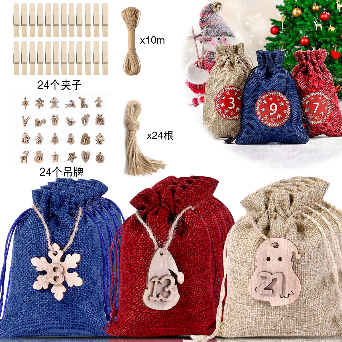 亚马逊热卖麻布圣诞礼品袋 降临日历圣诞套装 抽绳圣诞麻布袋批发월 판매량 2개재구매율 0%4,275원 * 수입시 예상 단가15.00元14.25元