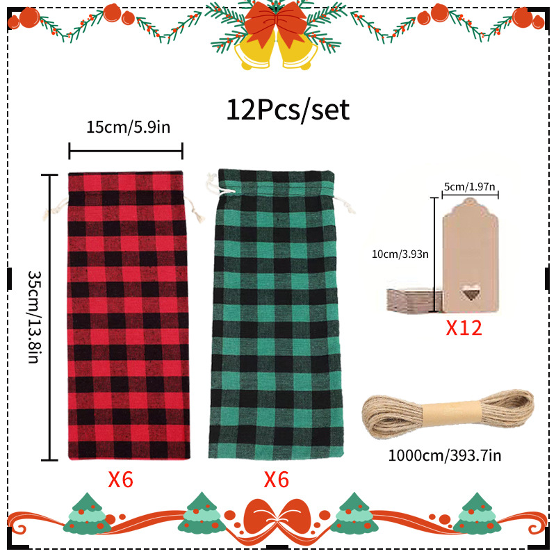 跨境热销圣诞格纹棉布红酒束口袋香槟酒瓶抽绳装饰葡萄酒布袋套装월 판매량 5905개재구매율 50%360원 * 수입시 예상 단가1.20元