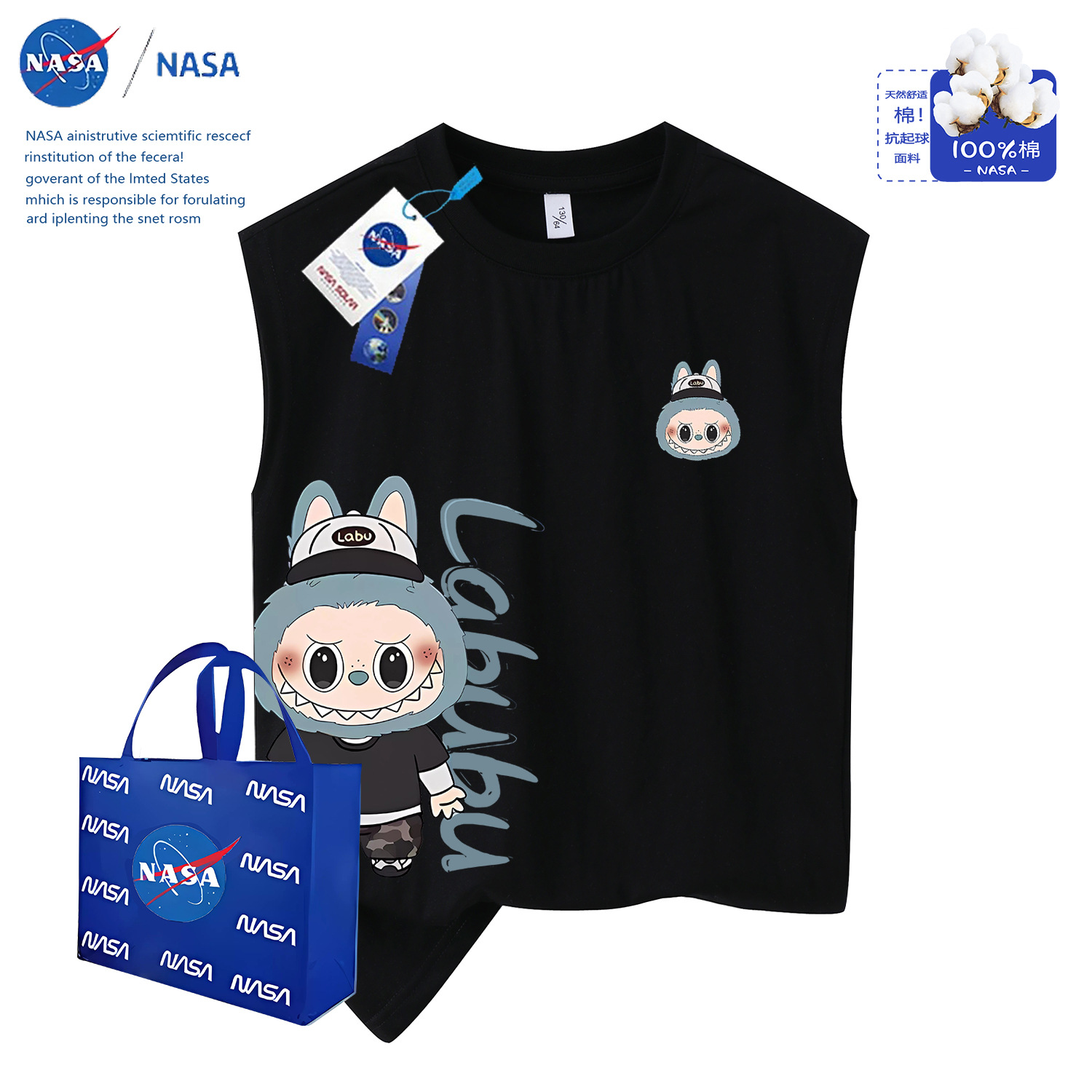 NASA夏季2025爆款潮流Labubu拉布布百搭潮流学生版男孩坎肩上衣월 판매량 0개재구매율 0%4,479원 * 수입시 예상 단가15.70元14.93元