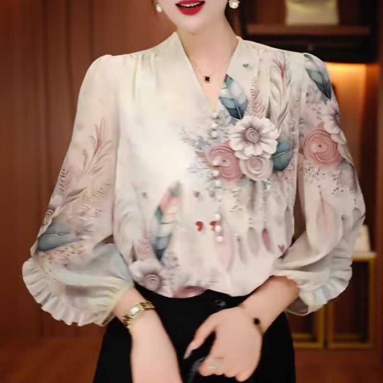 时颖跨境热卖秋季新款深V领雪纺衫女欧美修身显瘦印花长袖上衣女월 판매량 2개재구매율 0%15,036원 * 수입시 예상 단가50.12元