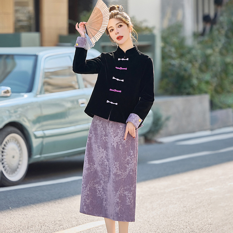2025春装新品爆款气质新中式丝绒盘扣上衣压花半裙两件套SH035월 판매량 1개재구매율 0%70,110원 * 수입시 예상 단가246.00元233.70元