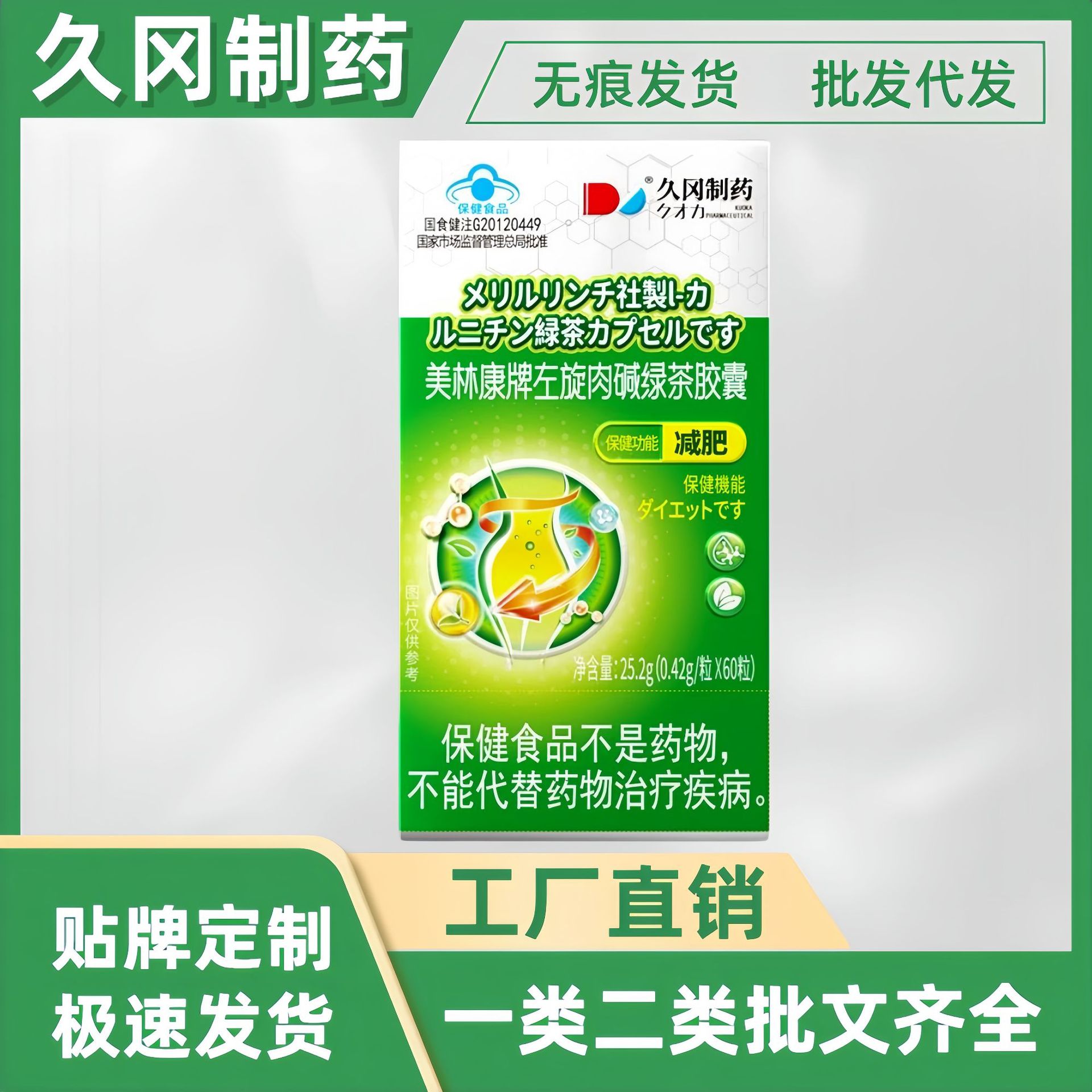 久冈制药美林康左旋肉碱绿茶胶囊60粒/盒爆款厂家直供现货批发量월 판매량 0개재구매율 0%19,620원 * 수입시 예상 단가65.40元