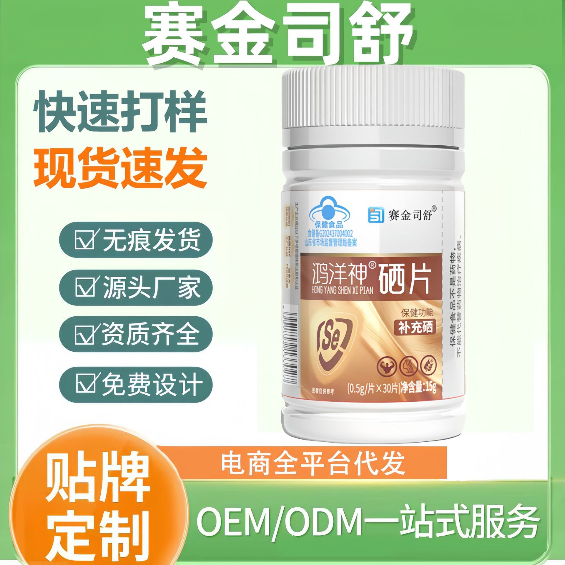 赛金司舒鸿洋神®硒片补充硒官方旗舰店正品厂家直供爆款现货批发월 판매량 0개재구매율 0%1,260원 * 수입시 예상 단가4.20元
