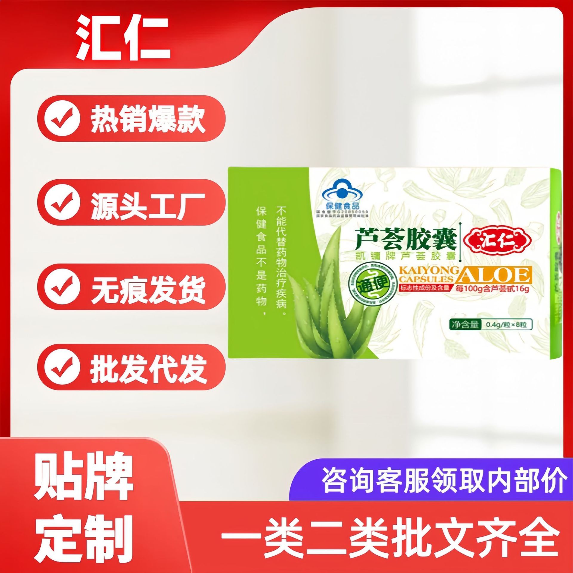 汇仁凯镛牌芦荟胶囊8粒/盒爆款厂家直供现货批发量大价优抖音同款월 판매량 15개재구매율 100%4,500원 * 수입시 예상 단가15.00元