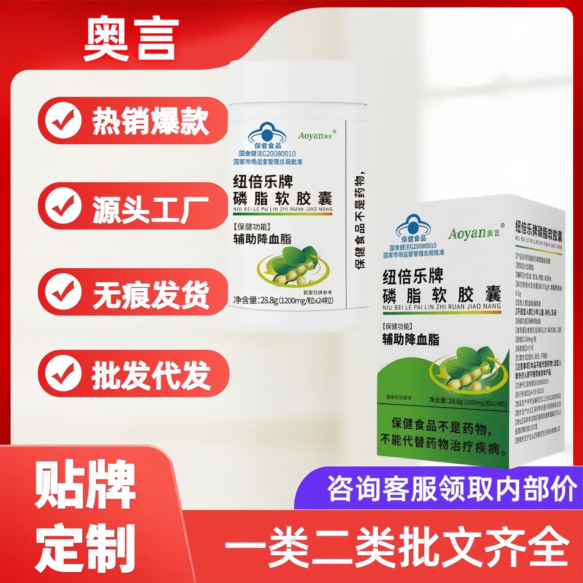 奥言纽倍乐牌磷脂软胶囊24粒/瓶爆款厂家直供现货批发量大价优惠월 판매량 1개재구매율 0%5,850원 * 수입시 예상 단가19.50元