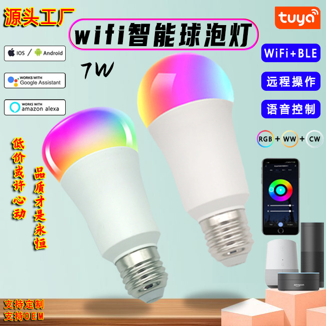 跨境爆款厂家直供语音控制调光调色7W塑包铝涂鸦wifi智能灯泡월 판매량 109개재구매율 14%6,600원 * 수입시 예상 단가22.00元