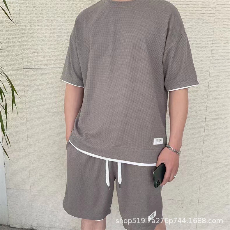 2022新款华夫格套装男夏季爆款短袖t恤男假两件五分裤套装现货批월 판매량 4001개재구매율 100%13,110원 * 수입시 예상 단가46.00元43.70元