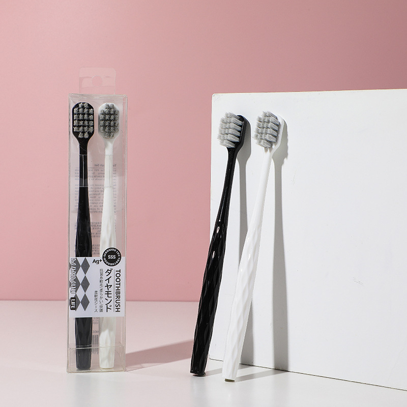 批发抖音爆款钻石纹抗菌丝软毛牙刷两支装情侣黑白成人牙刷厂家월 판매량 28개재구매율 0%990원 * 수입시 예상 단가3.30元