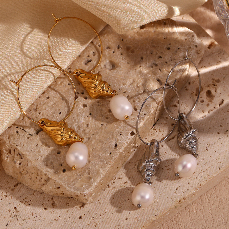 欧美时尚气质小众爆款耳环不锈钢镀18K金淡水珍珠海螺圆形耳圈女월 판매량 0개재구매율 0%6,150원 * 수입시 예상 단가20.50元