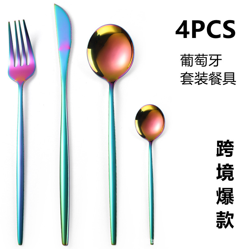 跨境亚马逊爆款葡萄牙不锈钢餐具西餐牛排刀叉勺甜品勺套装四件套월 판매량 0개재구매율 0%225원 * 수입시 예상 단가0.75元