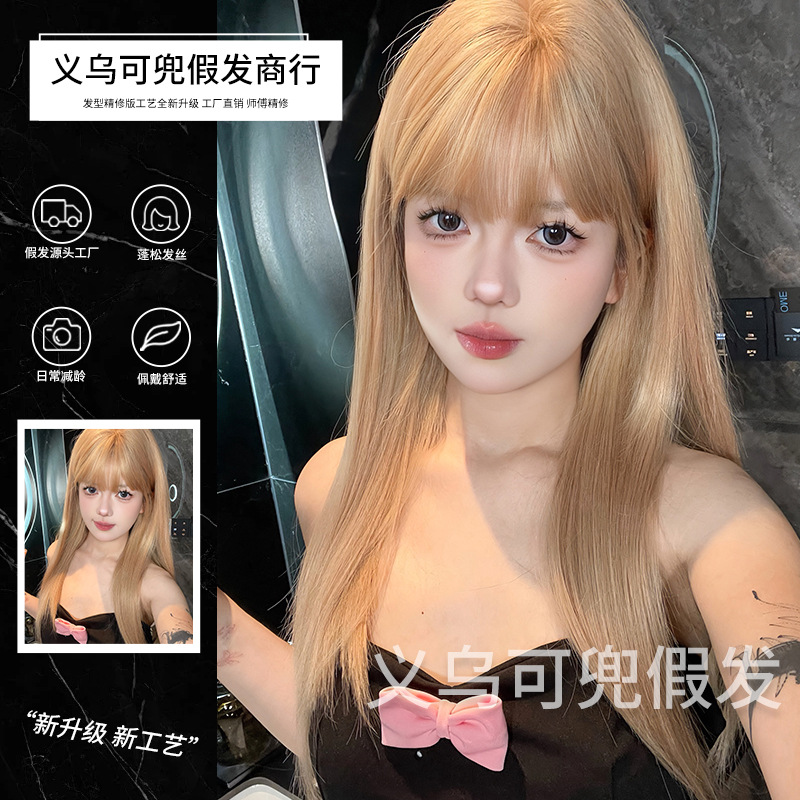 可兜假发爆款女团风奶茶金自然逼真长直发假发JK全头套월 판매량 75개재구매율 0%11,400원 * 수입시 예상 단가38.00元