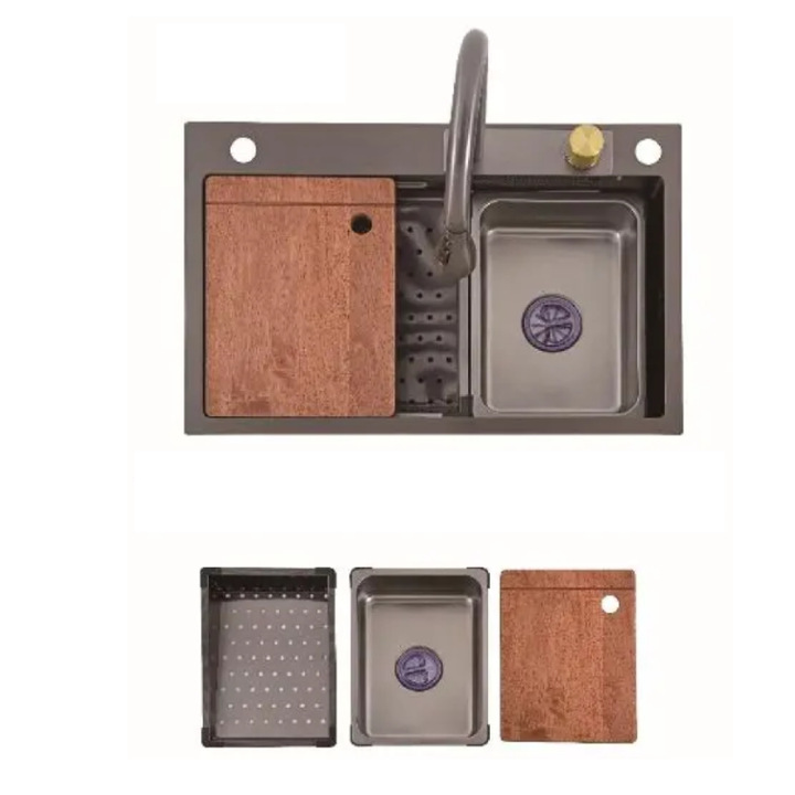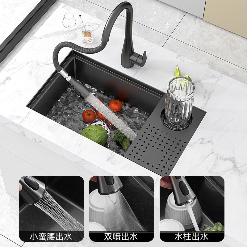 2024热卖高端多功能手工下装黑色纳米304不锈钢厨房水槽带洗杯器월 판매량 0개재구매율 0%119,700원 * 수입시 예상 단가399.00元