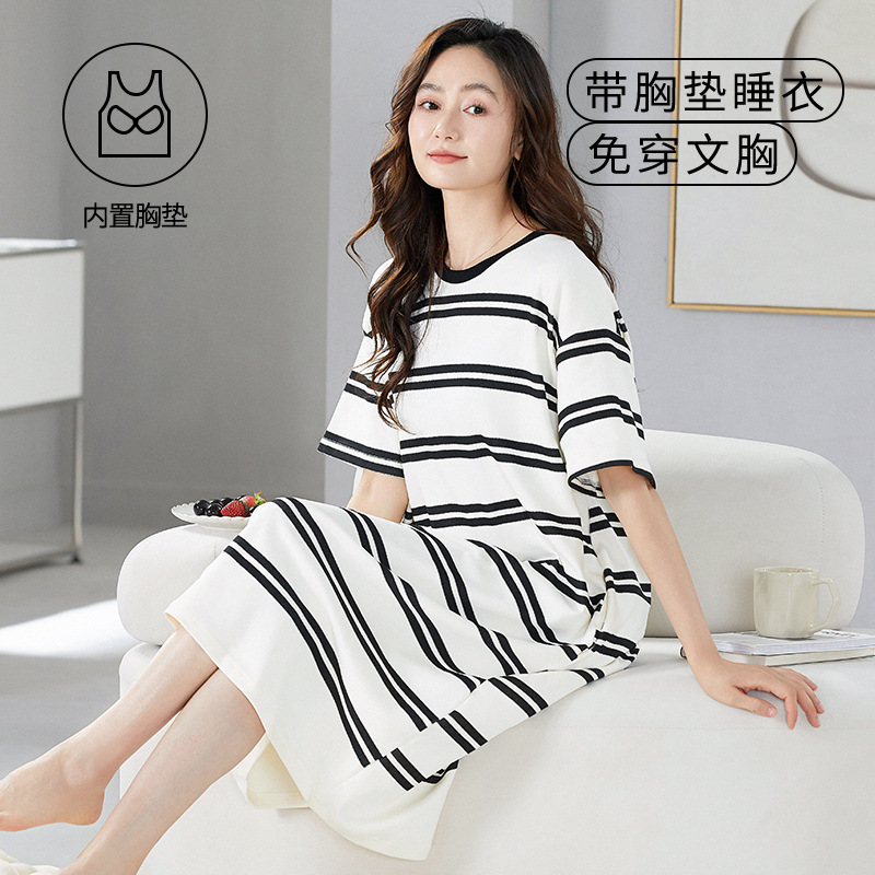 睡裙女夏季短袖爆款卡通休闲条纹睡衣夏天中长款少女士家居服批发월 판매량 3개재구매율 0%5,643원 * 수입시 예상 단가19.80元18.81元