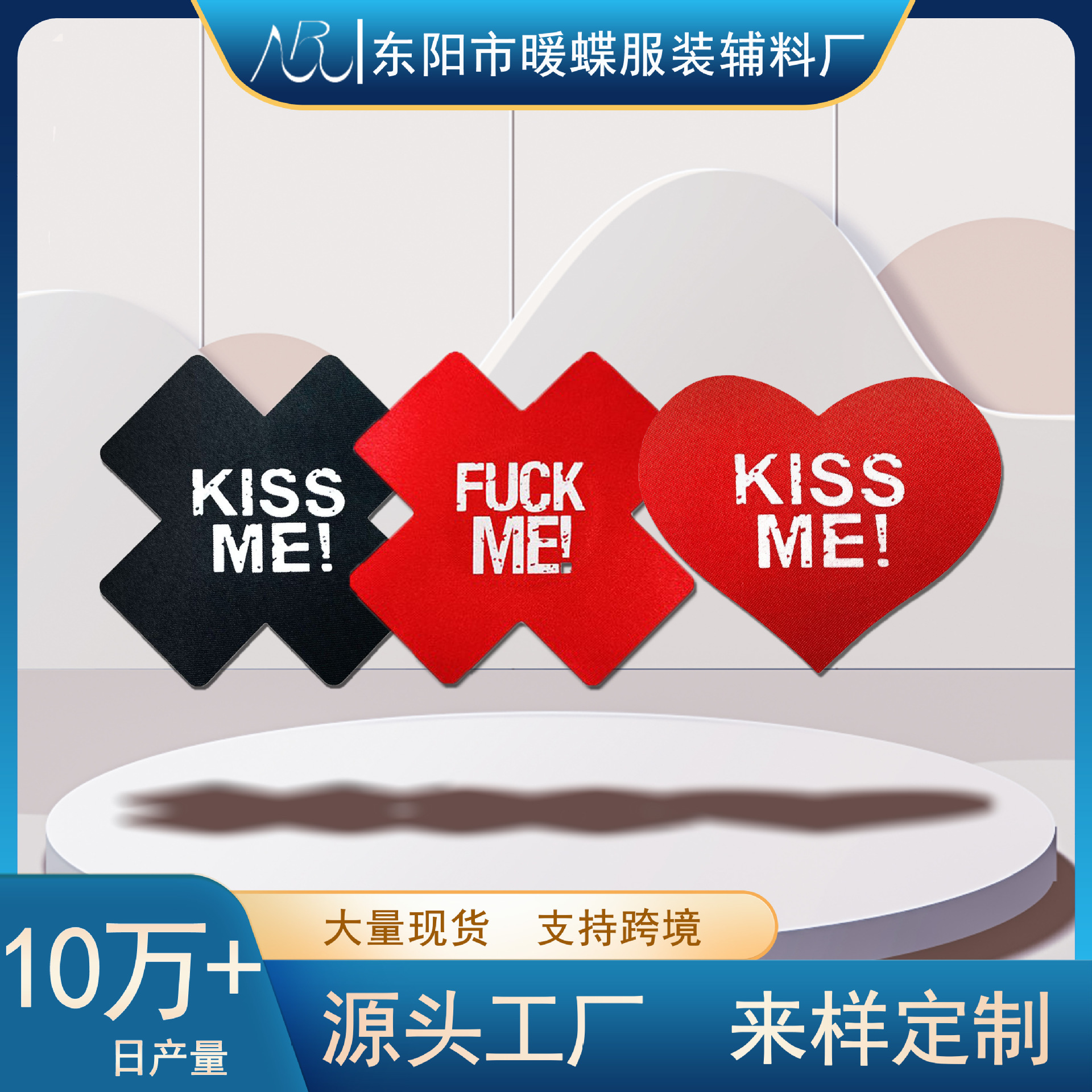 跨境热销美乳贴一次性绸布色丁布十字印字胸贴FM性感污字隐形월 판매량 23772개재구매율 0%255원 * 수입시 예상 단가0.85元