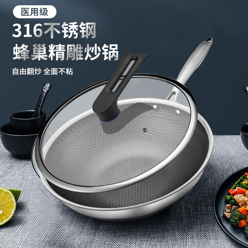 定制双面蜂窝316不锈钢炒锅三层钢不粘锅少油烟平底炒菜锅批发월 판매량 598개재구매율 0%25,500원 * 수입시 예상 단가85.00元