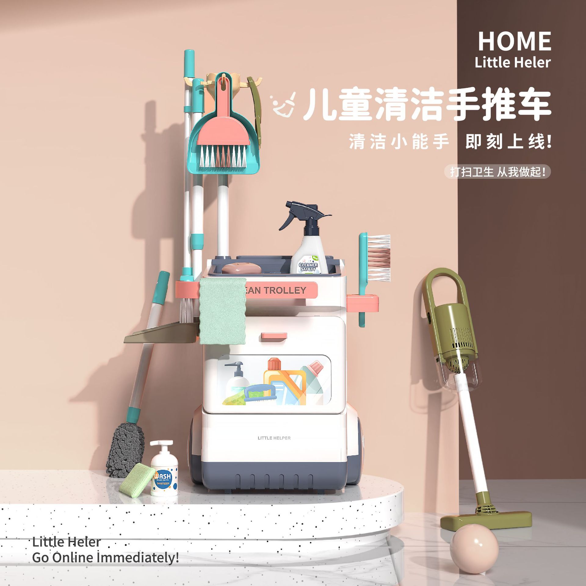 跨境热卖 儿童扫地玩具清洁套装工具手推车仿真过家家打扫玩具월 판매량 1403개재구매율 38%13,893원 * 수입시 예상 단가48.70元46.31元