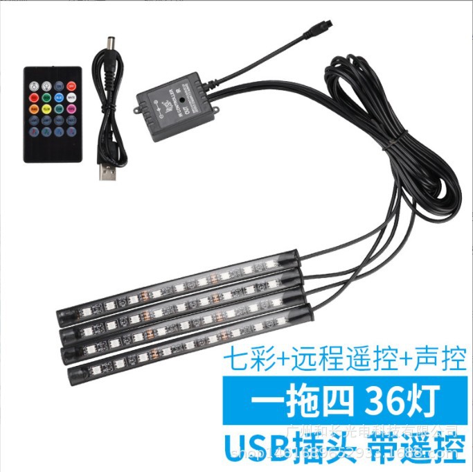 跨境热卖 汽车气氛灯车内氛围灯脚底灯 声控36灯七彩USB一拖四9灯월 판매량 0개재구매율 0%2,400원 * 수입시 예상 단가8.00元