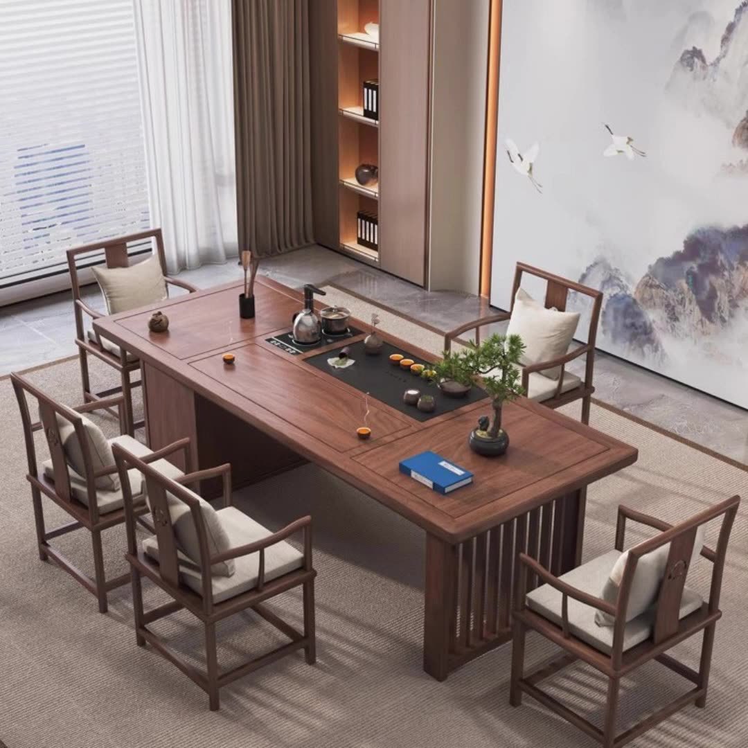 新中式办公室高档南美胡桃木茶桌椅组合现代家用一桌五椅实木茶台월 판매량 1개재구매율 0%600,000원 * 수입시 예상 단가2,000.00元