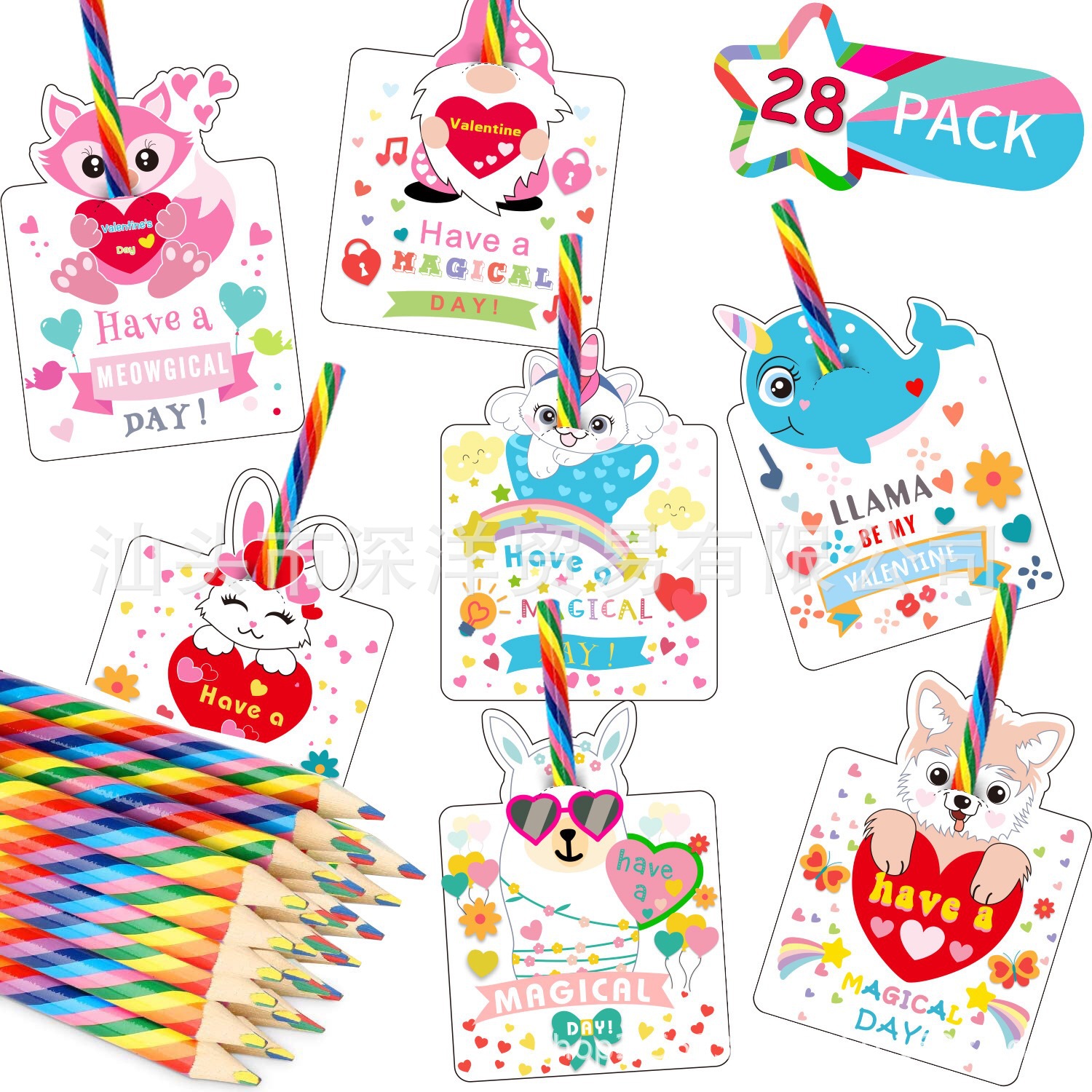 亚马逊跨境热卖情人节儿童贺卡28张卡片28支铅笔兔子海豚贺卡交换월 판매량 1000개재구매율 0%900원 * 수입시 예상 단가3.00元