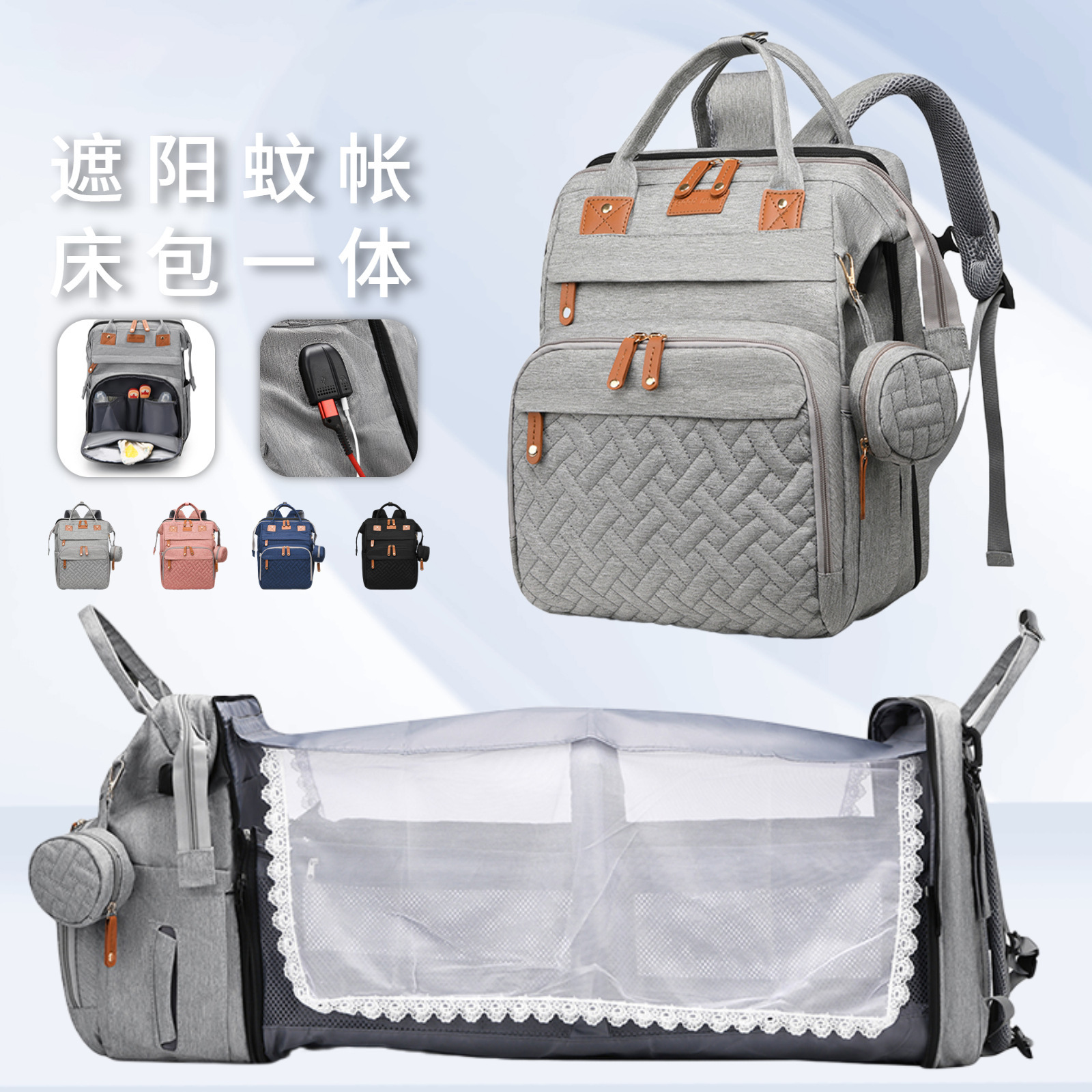 妈咪包亚马逊热卖900D阳离子床包母婴包蚊帐usb充电多功能妈妈包월 판매량 0개재구매율 0%21,900원 * 수입시 예상 단가73.00元