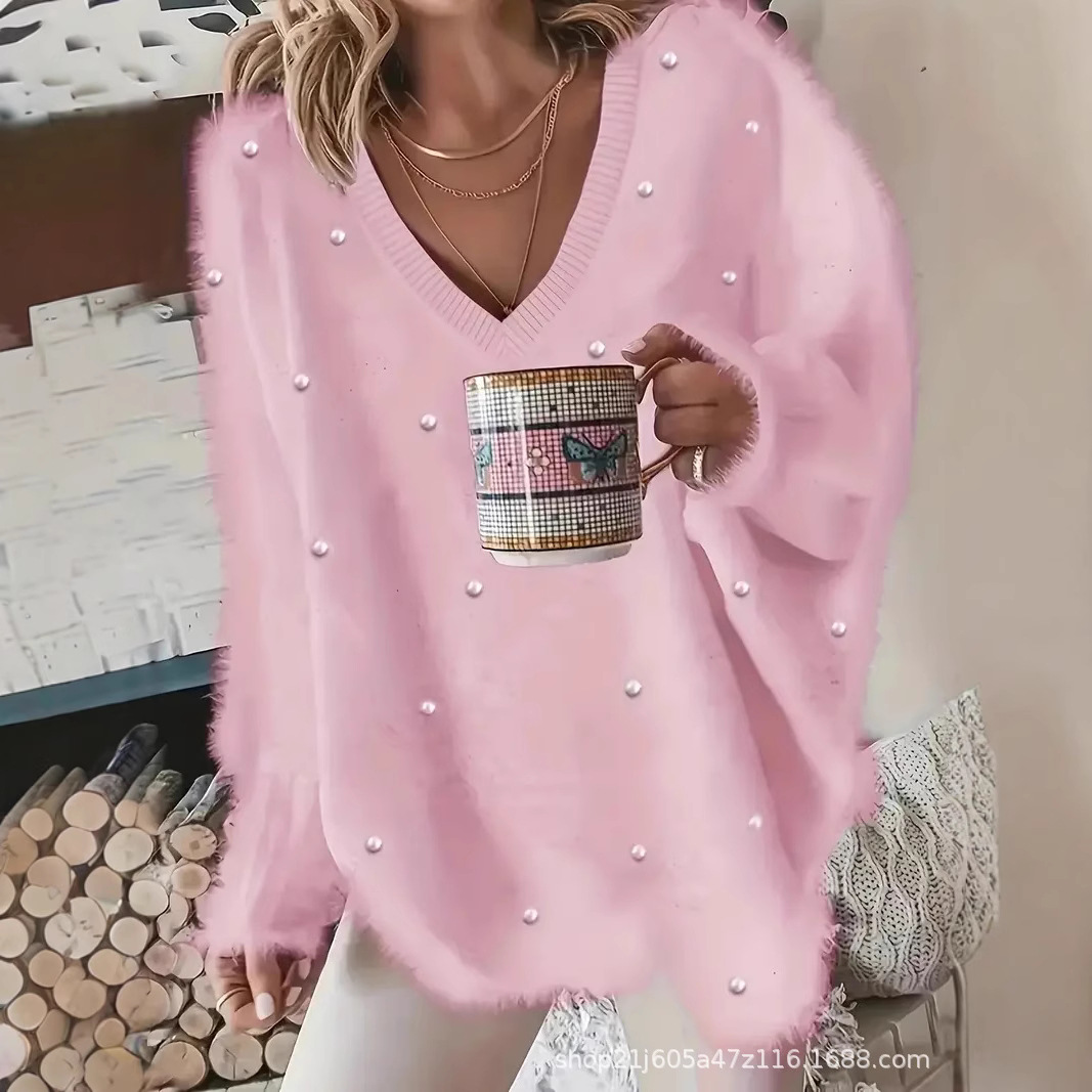 2025秋冬欧美跨境独立站爆款V领钉珠纯色仿貂毛套头毛衣女上衣월 판매량 0개재구매율 0%16,167원 * 수입시 예상 단가53.89元