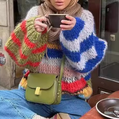 现货爆款2025欧美跨境条纹毛衣女针织衫时尚秋冬圆领宽松彩色撞色월 판매량 889개재구매율 50%25,500원 * 수입시 예상 단가85.00元