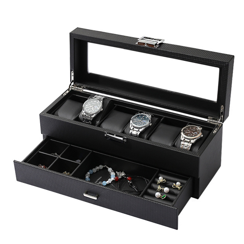 跨境热销现货批发碳纤纹PU皮双层6表首饰多功能收纳盒手表首饰盒월 판매량 0개재구매율 0%19,095원 * 수입시 예상 단가67.00元63.65元