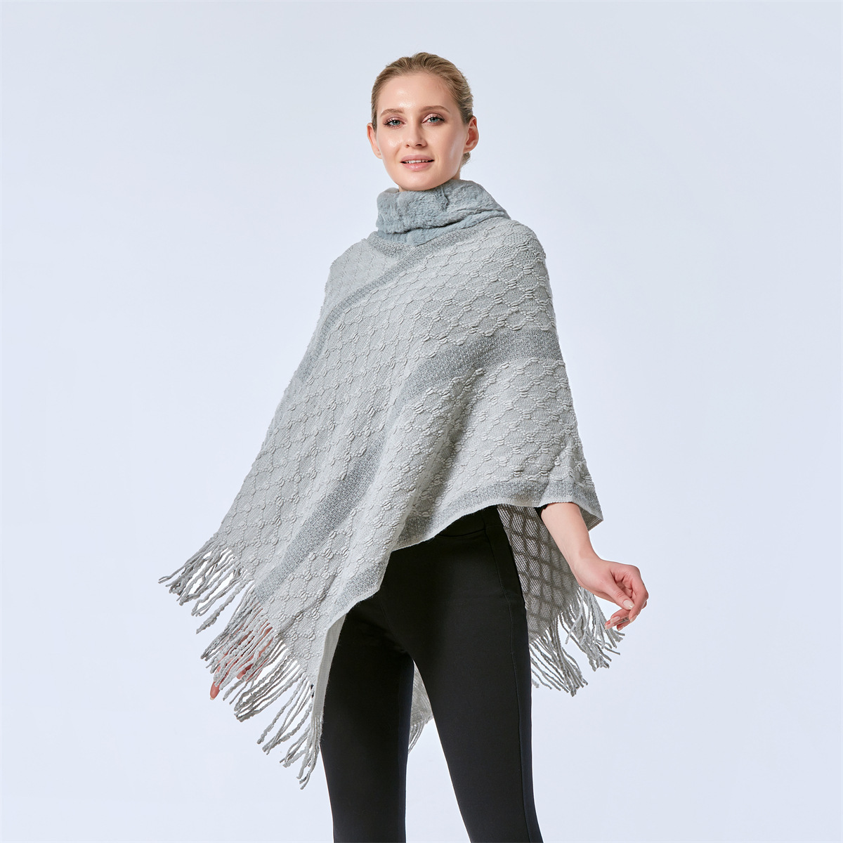 亚马逊爆款欧美女装中长款毛领高领流苏斗篷披肩宽松针织衫毛衣월 판매량 4개재구매율 0%7,200원 * 수입시 예상 단가24.00元