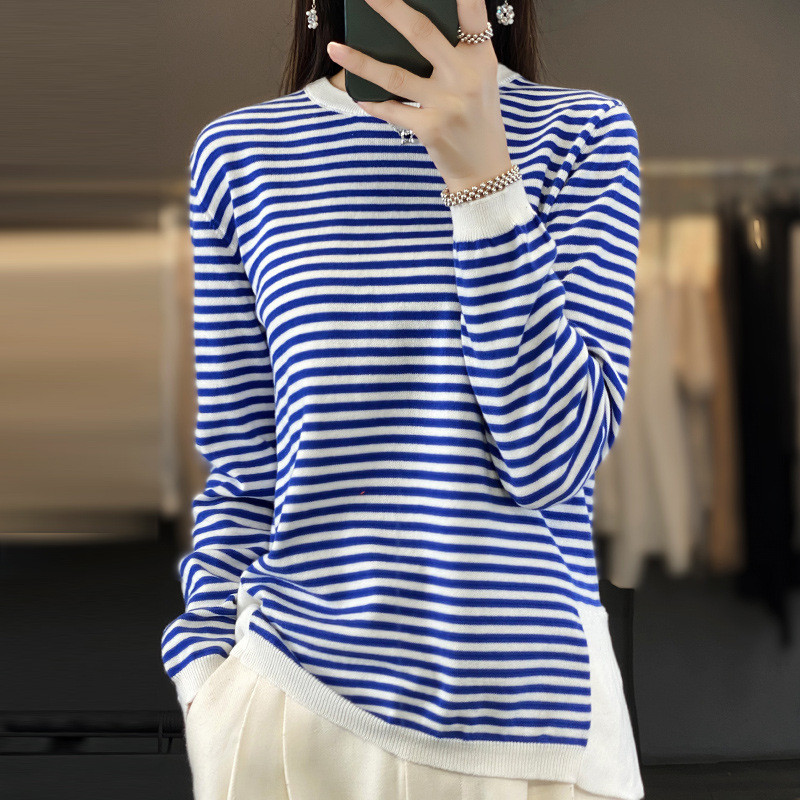 春秋新款纯棉圆领针织打底衫女条纹拼色时尚洋气爆款内搭毛衣上衣월 판매량 1개재구매율 0%17,100원 * 수입시 예상 단가57.00元