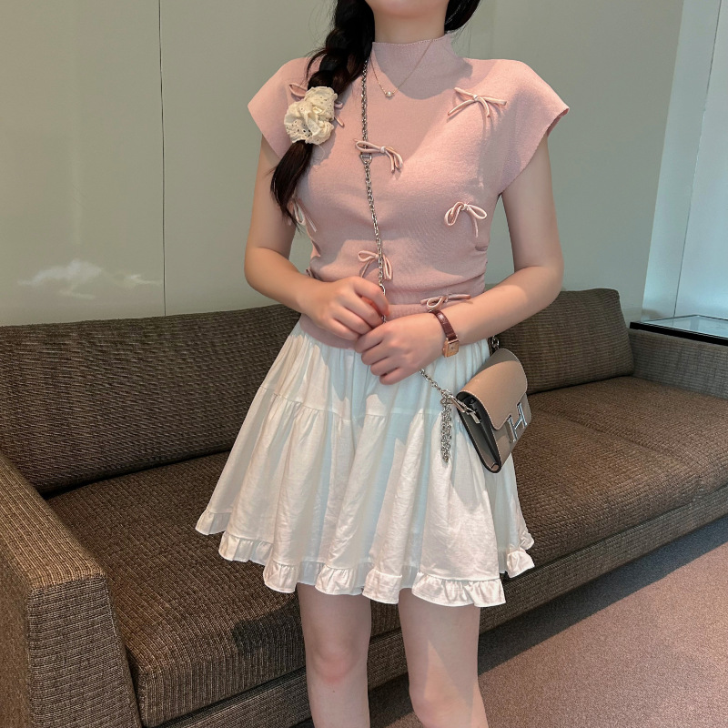2024爆款韩系俏皮蝴蝶结立领显瘦针织衫ins通勤短袖上衣월 판매량 330개재구매율 0%3,300원 * 수입시 예상 단가11.00元