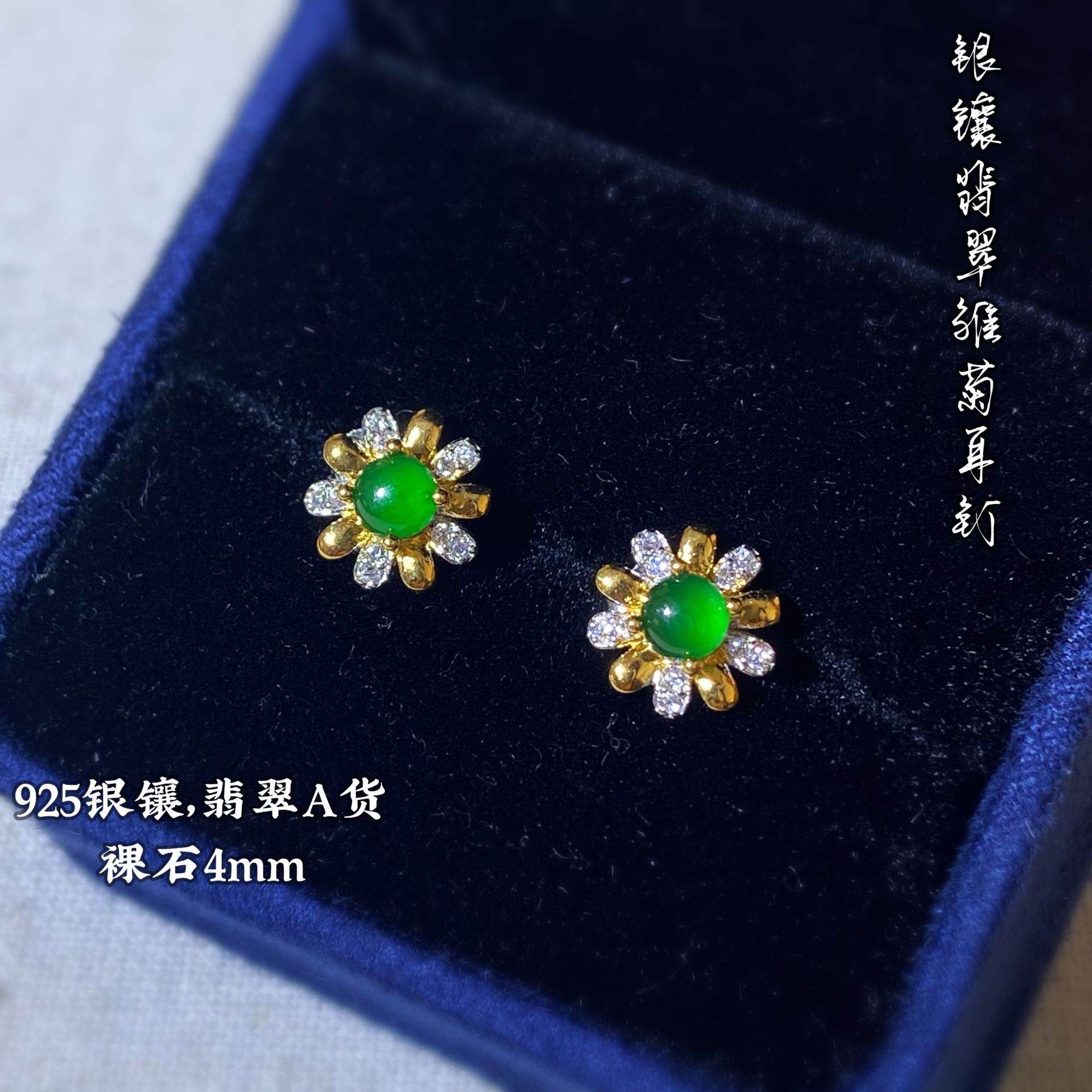 厂家直销爆款天然A货绿翡翠蛋面耳钉耳饰925银镶小雏菊经典百搭월 판매량 4개재구매율 0%19,500원 * 수입시 예상 단가65.00元