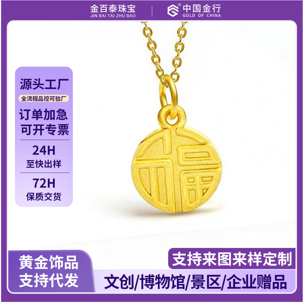 中国金行黄金999小福牌3D硬金足金圆形吊坠福字牌项链女纯金월 판매량 0개재구매율 0%104,400원 * 수입시 예상 단가348.00元