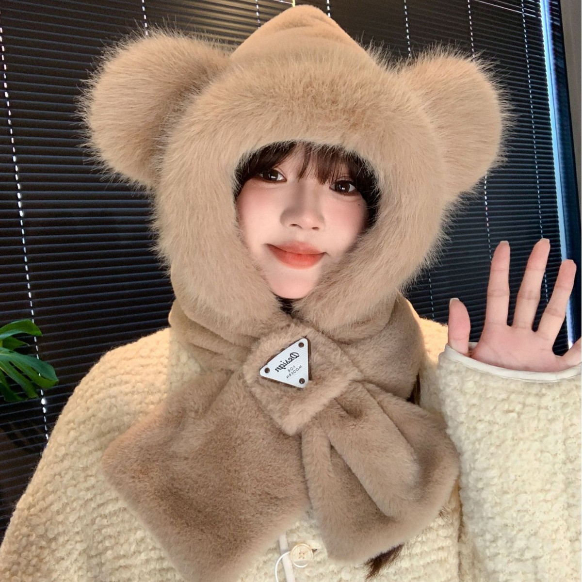 帽子女冬季可爱仿狐狸毛绒帽子围巾一体骑行防寒风护耳保暖套头帽월 판매량 4개재구매율 50%5,340원 * 수입시 예상 단가17.80元