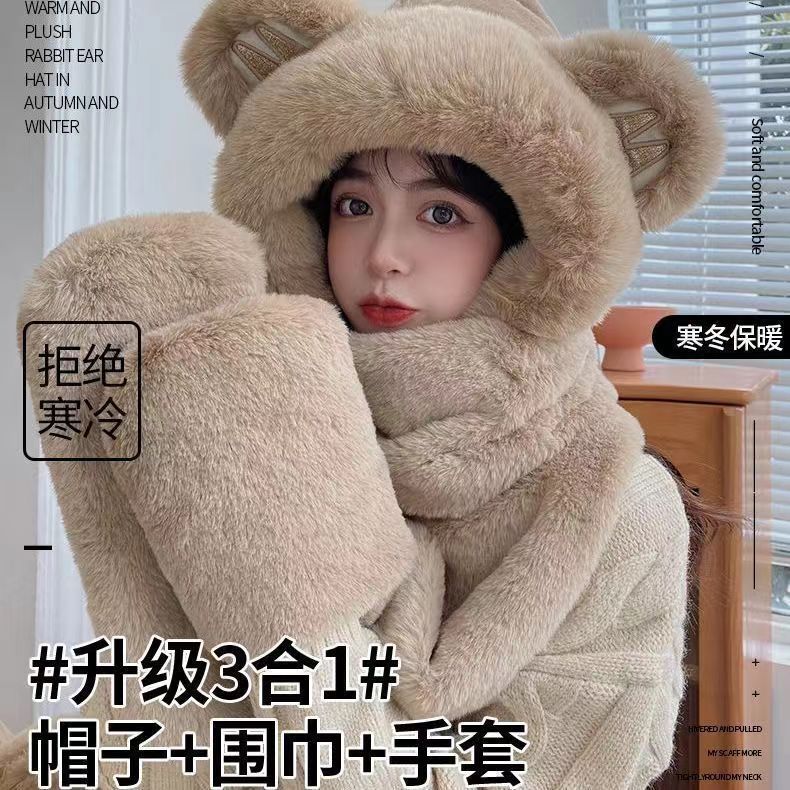 草莓熊帽子冬季围巾一体加厚保暖毛绒多件套爆款防风防寒骑车必备월 판매량 0개재구매율 0%20,700원 * 수입시 예상 단가69.00元