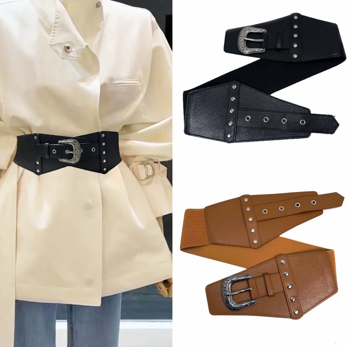 跨境热卖 时尚女士腰封 松紧弹力收腰配西装连衣裙复古铆钉宽腰带월 판매량 19개재구매율 0%4,170원 * 수입시 예상 단가13.90元