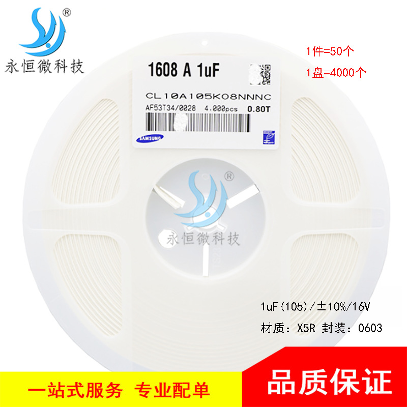 贴片陶瓷电容CL10A105KO8NNNC 1uF ±10% 16V 0603 105K X5R原装월 판매량 0개재구매율 0%450원 * 수입시 예상 단가1.50元