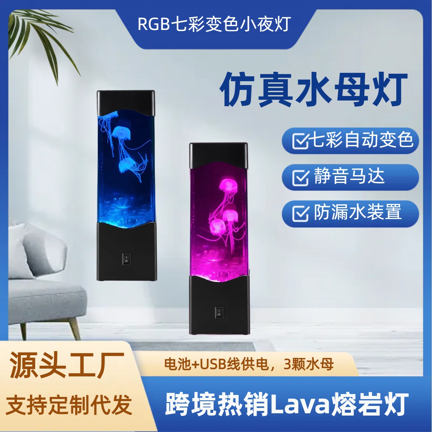 跨境热销仿真水母灯LED七彩变色小夜灯USB创意礼品氛围装饰熔岩灯월 판매량 520개재구매율 0%7,500원 * 수입시 예상 단가25.00元